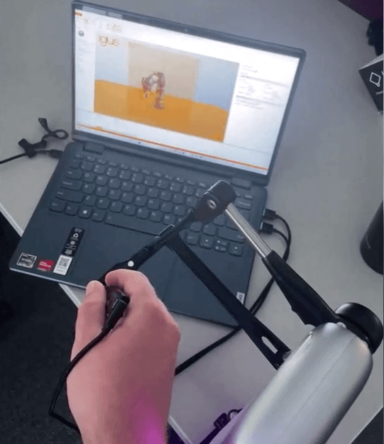The Haply sensor, an advanced motion-capturing device, enables intuitive control of the igus ReBeL robot. By detecting a user’s movements, it translates them into robotic actions, allowing seamless operation. Additionally, the Haply sensor includes a force feedback function, creating an interactive experience where users can physically feel the robot's responses. Integrated via the iRC application using the CRI interface, this setup ensures reliable communication between sensor and robot for precise and efficient operations.